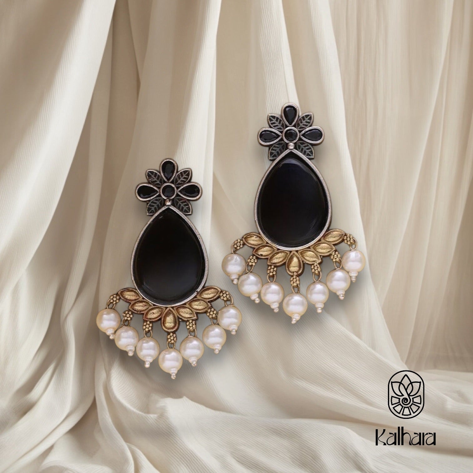 Oxidised Black and Pearl Earring